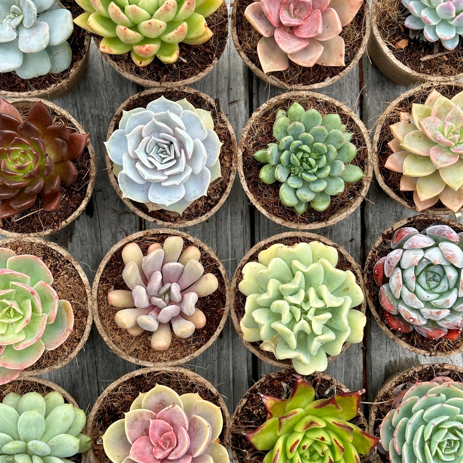- (6) Mixed Succulents Inside 10cm x 10cm Jiffy Small Pots.